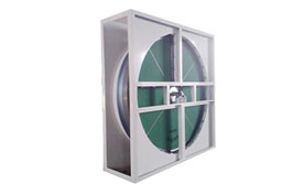 在再生過(guò)程中,再生空氣經(jīng)過(guò)加熱后(120℃左右),進(jìn)入轉(zhuǎn)輪再生區(qū)扇面,在高溫狀態(tài)下,轉(zhuǎn)輪中的水分子被脫附,散失到再生 空氣中。再生空氣由于在脫附過(guò)程中損失了熱量,自身溫度降低,變成了含濕量很大的濕空氣,由再生風(fēng)機(jī)排至室外。除濕和再生同時(shí)進(jìn)行,待處理空氣不斷除濕,轉(zhuǎn)輪不斷再生,對(duì)空氣進(jìn)行連續(xù)除濕。