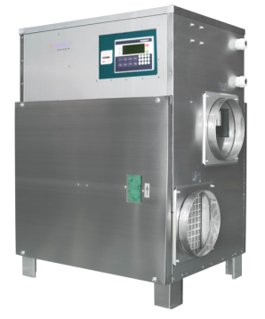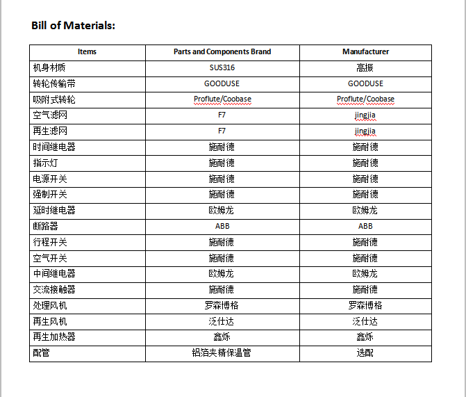 在再生過程中,再生空氣經(jīng)過加熱后(120℃左右),進入轉(zhuǎn)輪再生區(qū)扇面,在高溫狀態(tài)下,轉(zhuǎn)輪中的水分子被脫附,散失到再生 空氣中。再生空氣由于在脫附過程中損失了熱量,自身溫度降低,變成了含濕量很大的濕空氣,由再生風機排至室外。除濕和再生同時進行,待處理空氣不斷除濕,轉(zhuǎn)輪不斷再生,對空氣進行連續(xù)除濕。