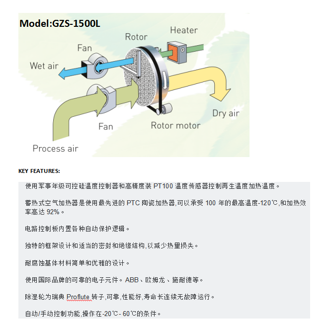 高振轉(zhuǎn)輪除濕機是本公司在十余年冷凍除濕機設(shè)計、制造經(jīng)驗的基礎(chǔ)上開發(fā)出的來可以在低溫環(huán)境下使用的除濕設(shè)備,由于冷凍除濕機的溫度適用范圍為18-38度,在低溫環(huán)境中除濕量大幅度下降,甚至出現(xiàn)結(jié)霜不除濕的現(xiàn)象,且最低濕度在RH30%時已無法再下降,無法適用于有低溫低溫要求的環(huán)境。轉(zhuǎn)輪除濕機解決了這一行業(yè)難題,拓展了除濕機的應(yīng)用領(lǐng)域,在冷庫、制藥、鋰電池、膠片車間、玻璃合片等場所應(yīng)用廣泛,在食品、海產(chǎn)干貨應(yīng)用方面也起到重要作用。