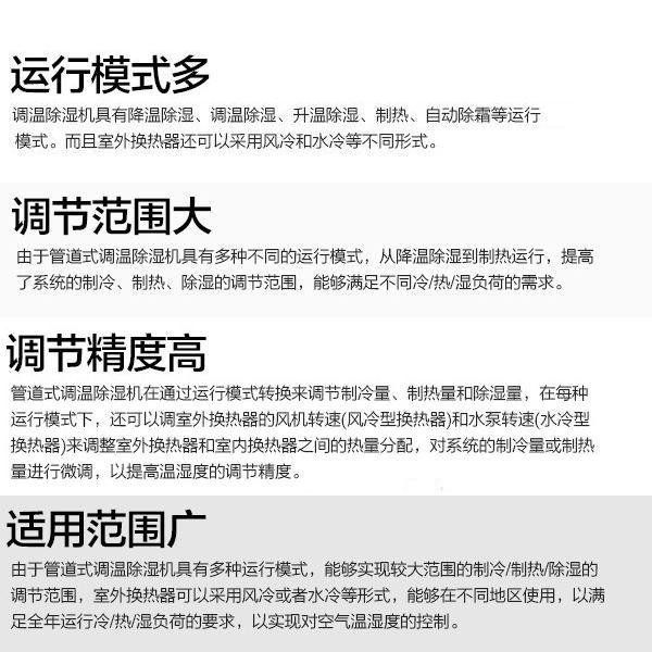 調(diào)溫除濕機采用制冷原理,使空氣中的水蒸汽通過蒸發(fā)器表面時冷凝析出,降低空氣的含濕量,以達(dá)到干燥環(huán)境空氣的目的。廣泛適用于對溫濕度要求比較高的地下商場,國防工程、車間、倉庫、電訊器材庫、檔案室、文物標(biāo)本室、洞庫等場所。